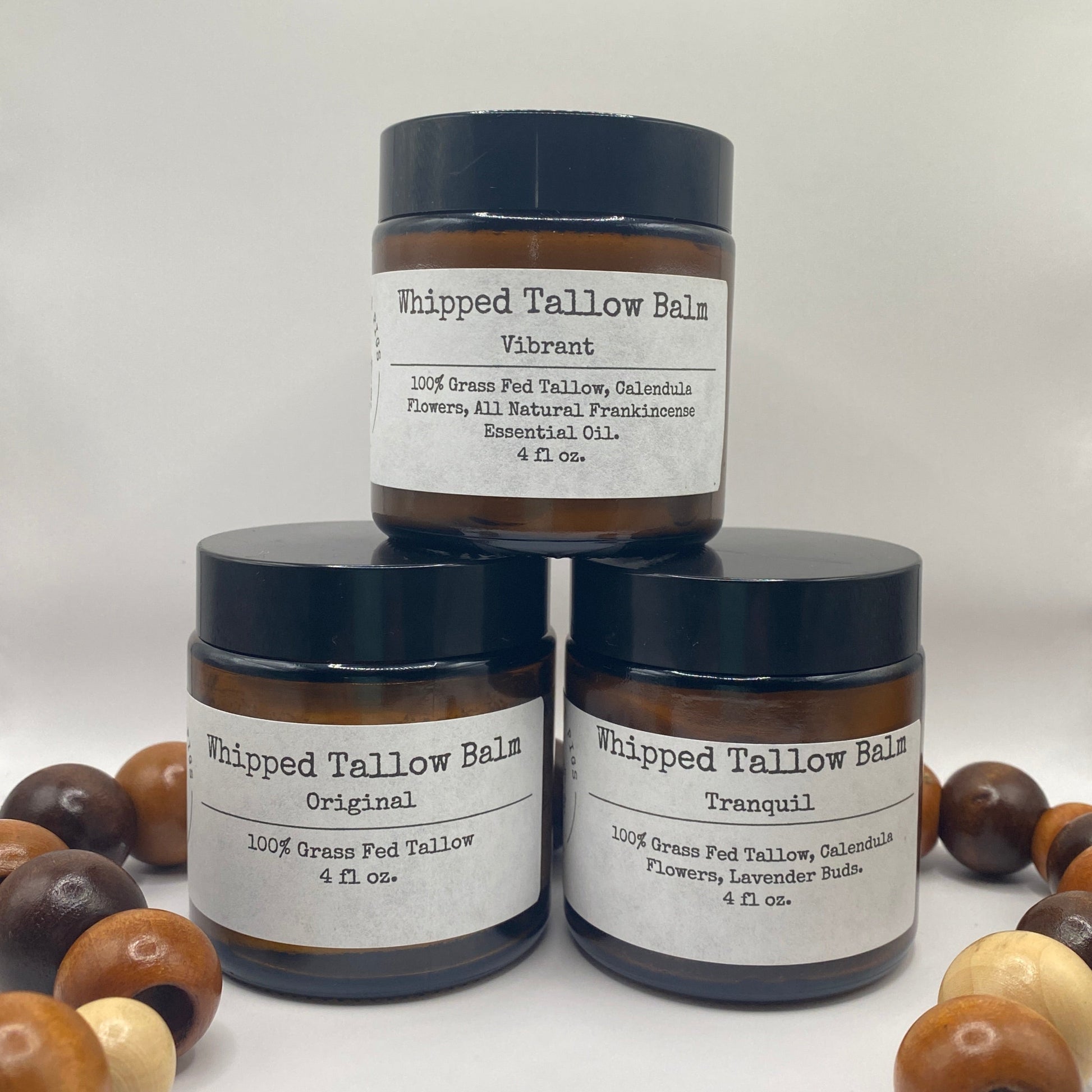 Vibrant: 100% Grass Fed Tallow, Calendula Flowers, All Natural Frankincense Essential Oil.